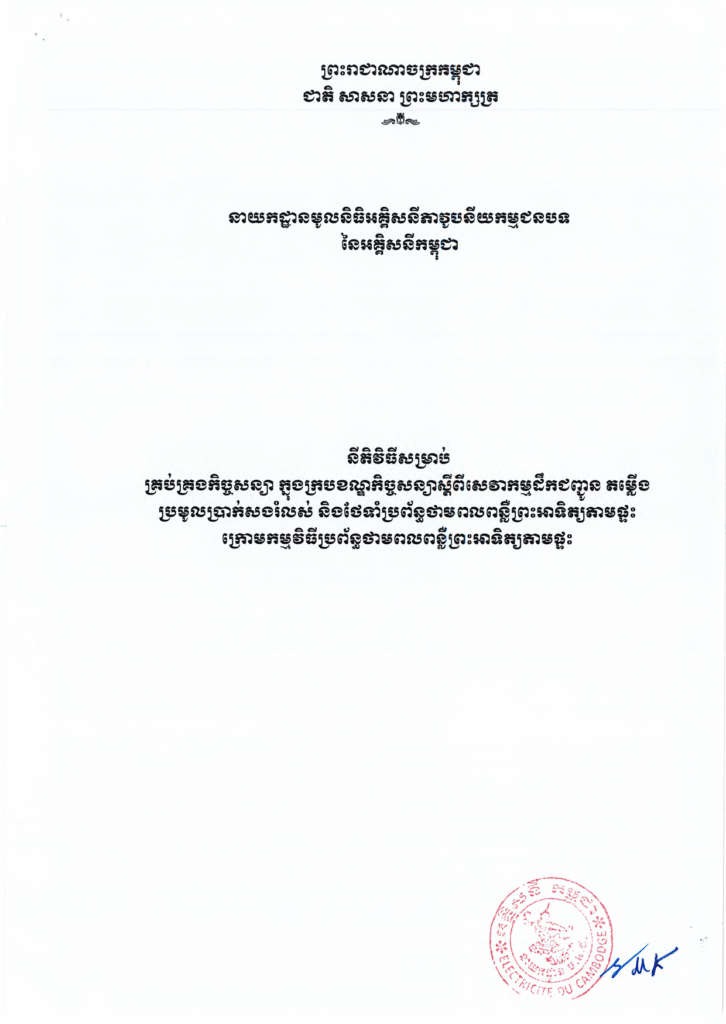 សេចក្ដីជូនដំណឹង ស្ដីពីកម្មវិធីលើលកម្ពស់ការតភ្ជាប់ចរន្តអគ្គិសនីពីប្រព័ន្ធបណ្ដាញជាតិសម្រាប់គ្រួសារក្រីក្រមានប័ណ្ណសមធម៌ (ប័ណ្ណក្រីក្រ) នៅតំបន់ជនបទ (២០២១)