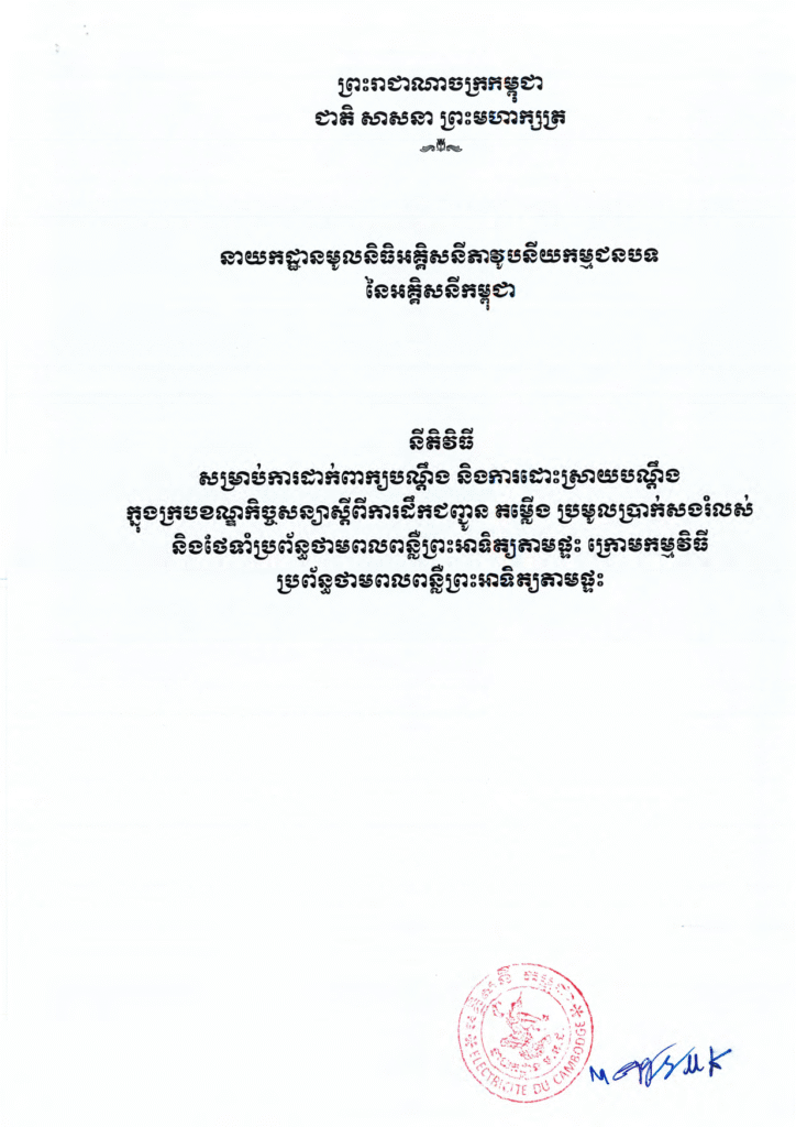 នីតិវិធីសម្រាប់ការដាក់ពាក្យបណ្តឹង និងដោះស្រាយបណ្ដឹង ក្នុងក្របខណ្ឌកិច្ចសន្យាស្ដីពីសេវាកម្មដឹកជញ្ជូន តម្លើងប្រមូលប្រាក់សង់រំលស់ និងថែទាំប្រព័ន្ធថាមពលពន្លឺព្រះអាទិត្យតាមផ្ទះ ក្រោមកម្មវិធីប្រព័ន្ធពន្លឺព្រះអាទិត្យតាមផ្ទះ