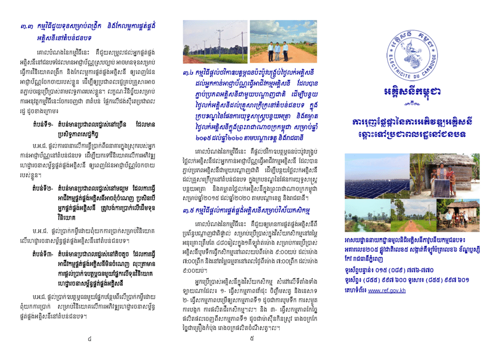 កម្មវិធីអភិវឌ្ឍន៍អគ្គិសនីភាវូបនីយកម្មជនបទរបស់អគ្គិសនីកម្ពុជាតាមរយៈនាយកដ្ឋានមូលនិធិអគ្គិសនីភាវូបនីយកម្មជនបទ (ម.អ.ជ.), (២០១៥)