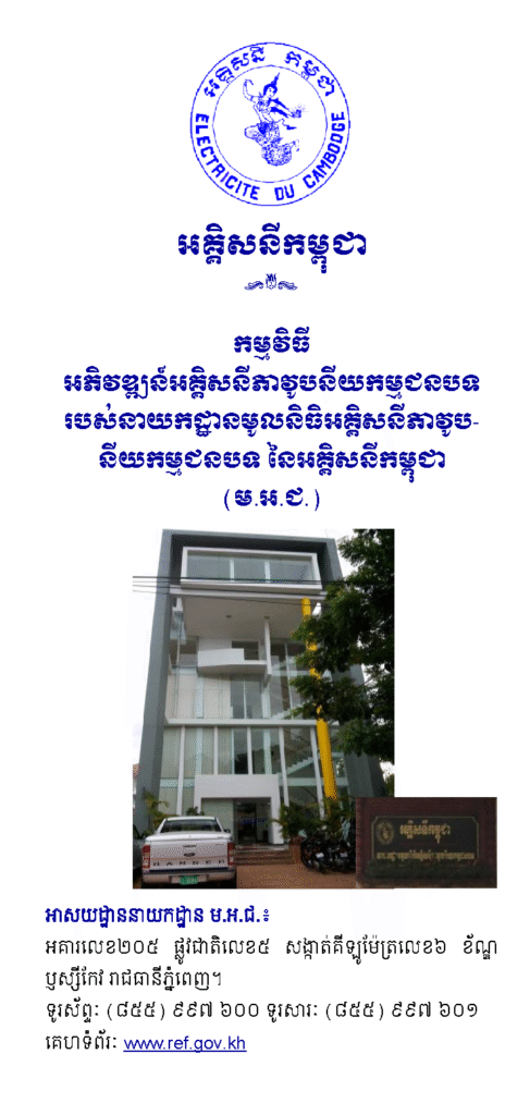 កម្មវិធីអភិវឌ្ឍន៍អគ្គិសនីភាវូបនីយកម្មជនបទរបស់អគ្គិសនីកម្ពុជាតាមរយៈនាយកដ្ឋានមូលនិធិអគ្គិសនីភាវូបនីយកម្មជនបទ (ម.អ.ជ.), (២០១៧)